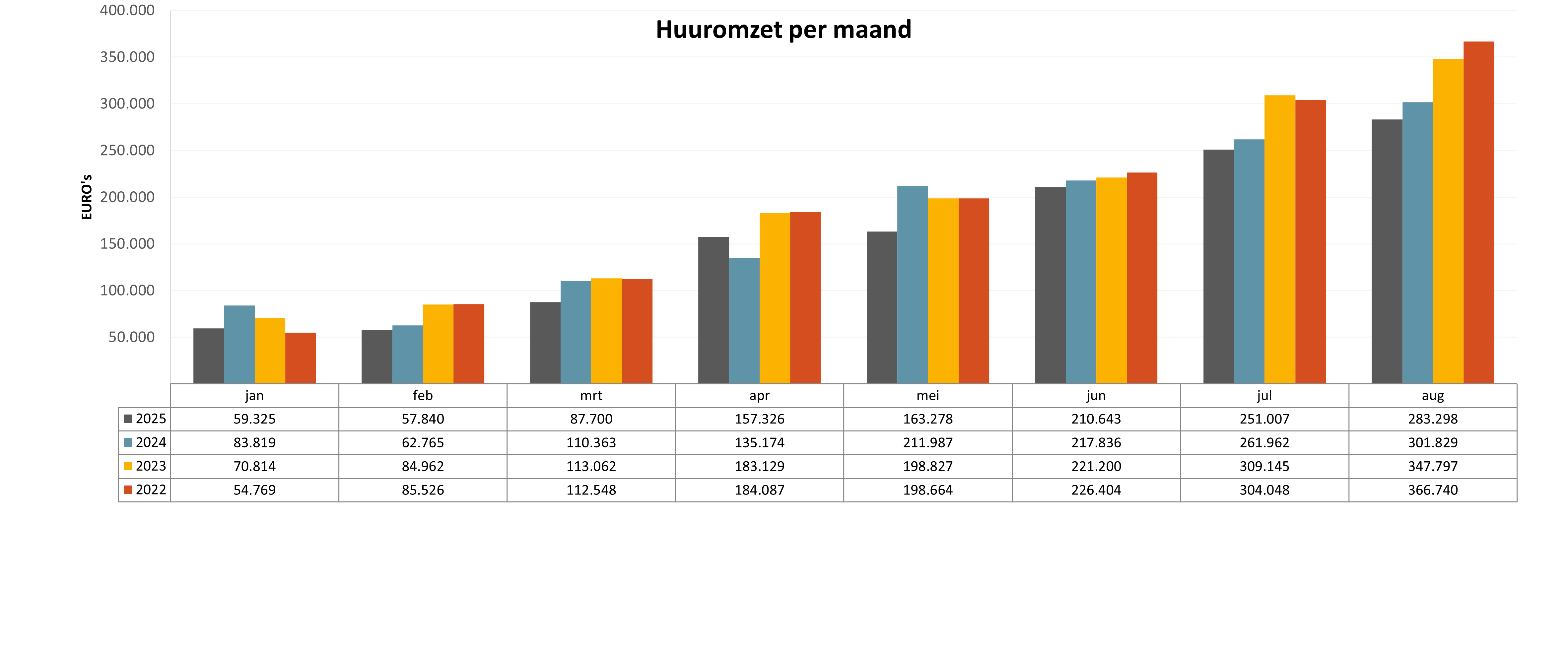 Overzicht huuromzet 2022-2025 (incl. BTW en servicekosten)
